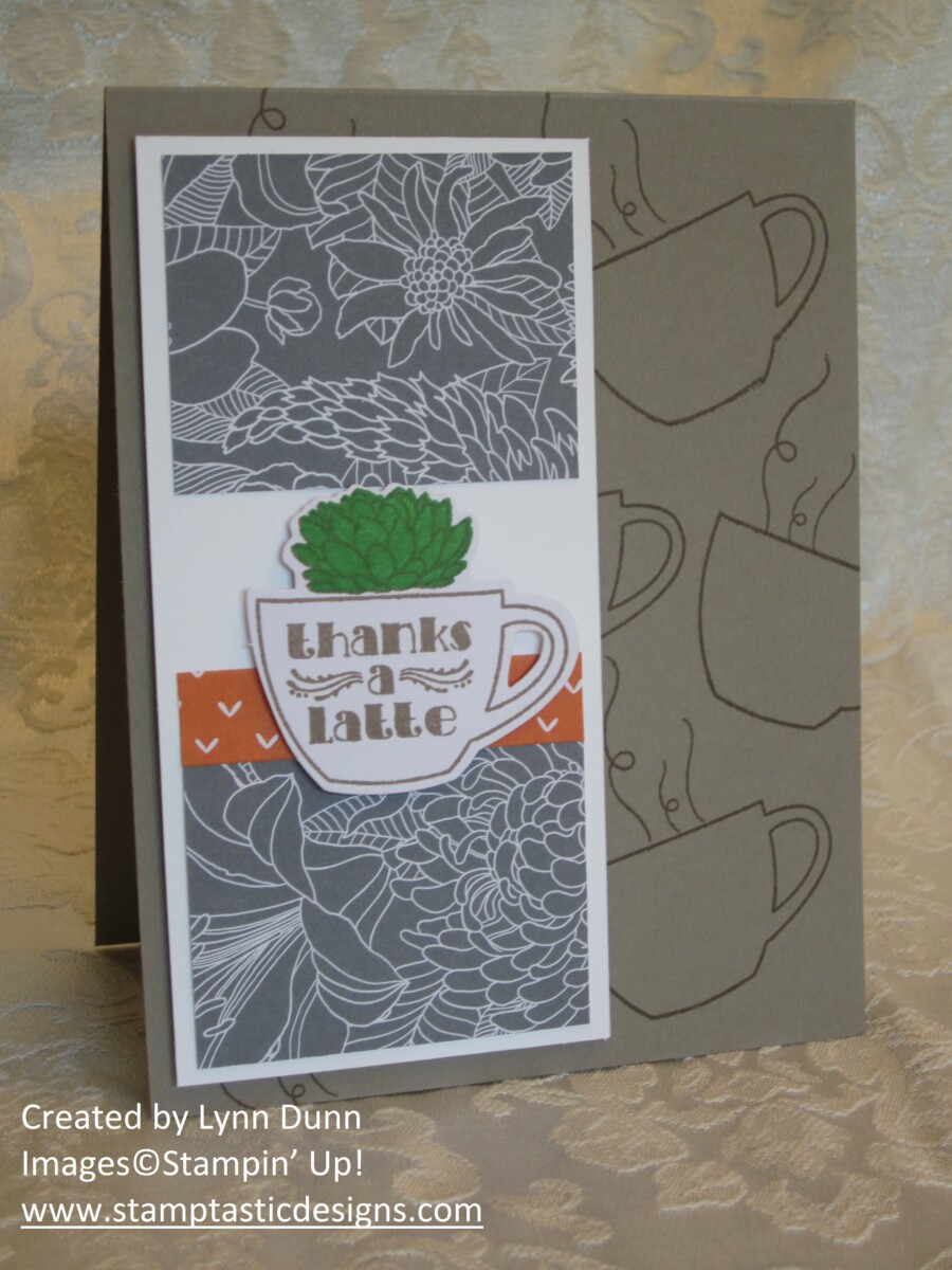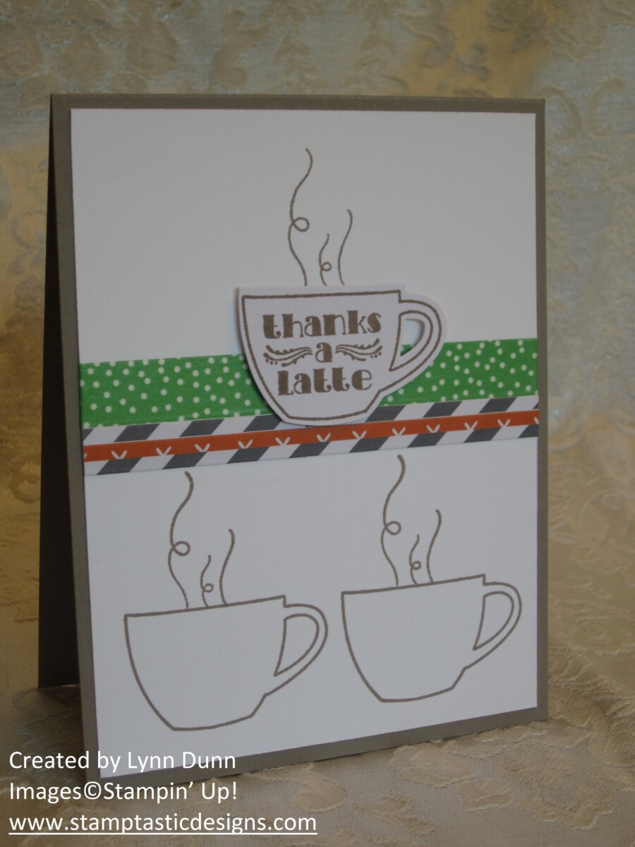 Thanks A Latte is this month’s Paper Pumpkin kit! Adorable little name for an adorable kit! This month’s kit contained all of the materials you needed to make 8 adorable little cards! The stamp images that came in this kit were simply awesome! Fun little sentiments for all occasions and some cute little coffee cup images!One of my favorite things about the Paper Pumpkin kits is the fun images that you get in each kit! You can use these images over and over again to create projects even after you have used up all of the materials in your kit! You can also use the materials and stamps to design your own fun projects….be creative with it! Here are some alternate projects I created with the stamps and some of the materials in the kit: