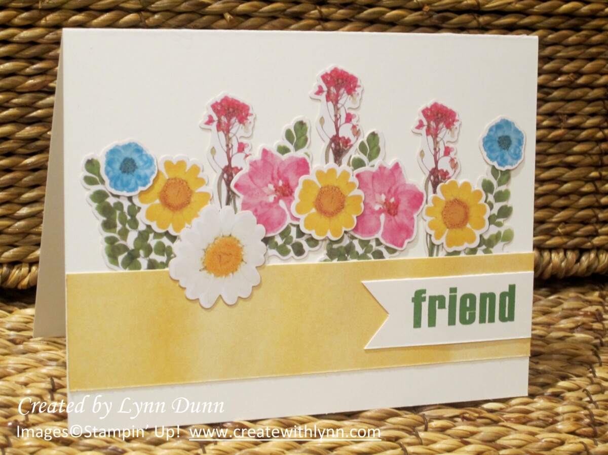 There were a total of 9 cards: 3 Thank You, 3 Celebrate, and 3 Friend cards. The wildflowers and the Sahara Sand cardstock were so pretty together! The flaps of the envelopes had the beautiful wildflower design as well. Plus, there were some beautiful wildflower stickers that you could use to decorate the envelopes. However, I decided to use the stickers to create some fun wildflower cards.
