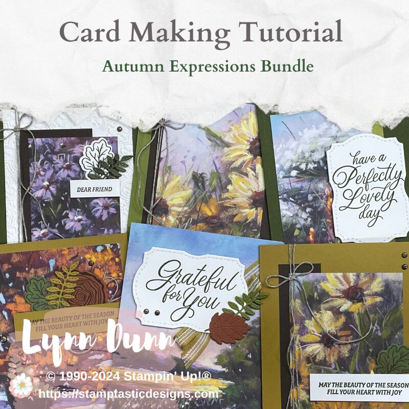 This card making tutorial is a digital download (pdf file) which includes 6 card ideas featuring the Autumn Expressions Bundle from Stampin’ Up!