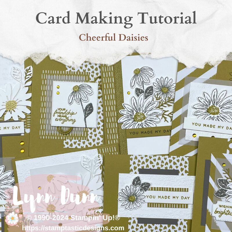 This card making tutorial is a digital download (pdf file) which includes 8 card ideas featuring the Cheerful Daisies Bundle and the 2023-2025 In Color Collection from Stampin’ Up!
