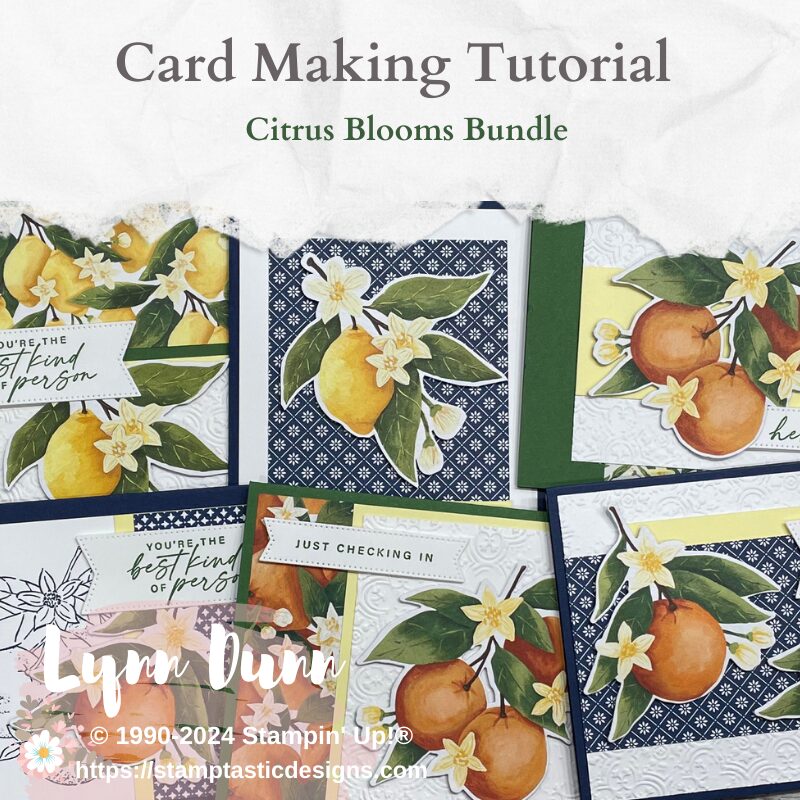 This card making tutorial is a digital download (pdf file) which includes 6 card ideas featuring the Citrus Blooms Bundle from Stampin’ Up!