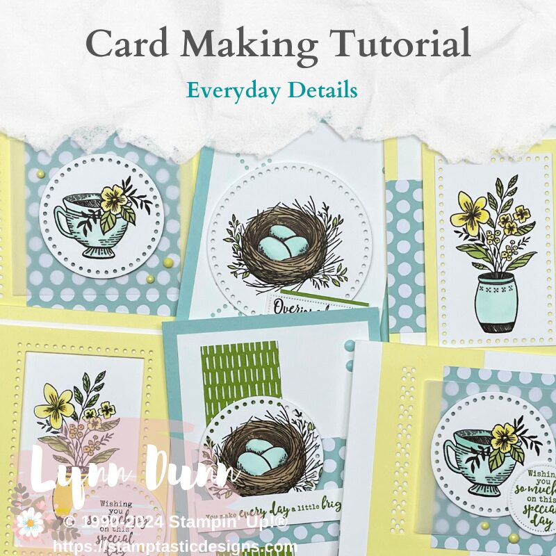 This card making tutorial is a digital download (pdf file) which includes 6 card ideas featuring the Everyday Details Bundle from Stampin’ Up!